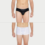 Includes 1× V Cotton Spandex Brief, black + 1× W Cotton Spandex Boxer Trunk, white