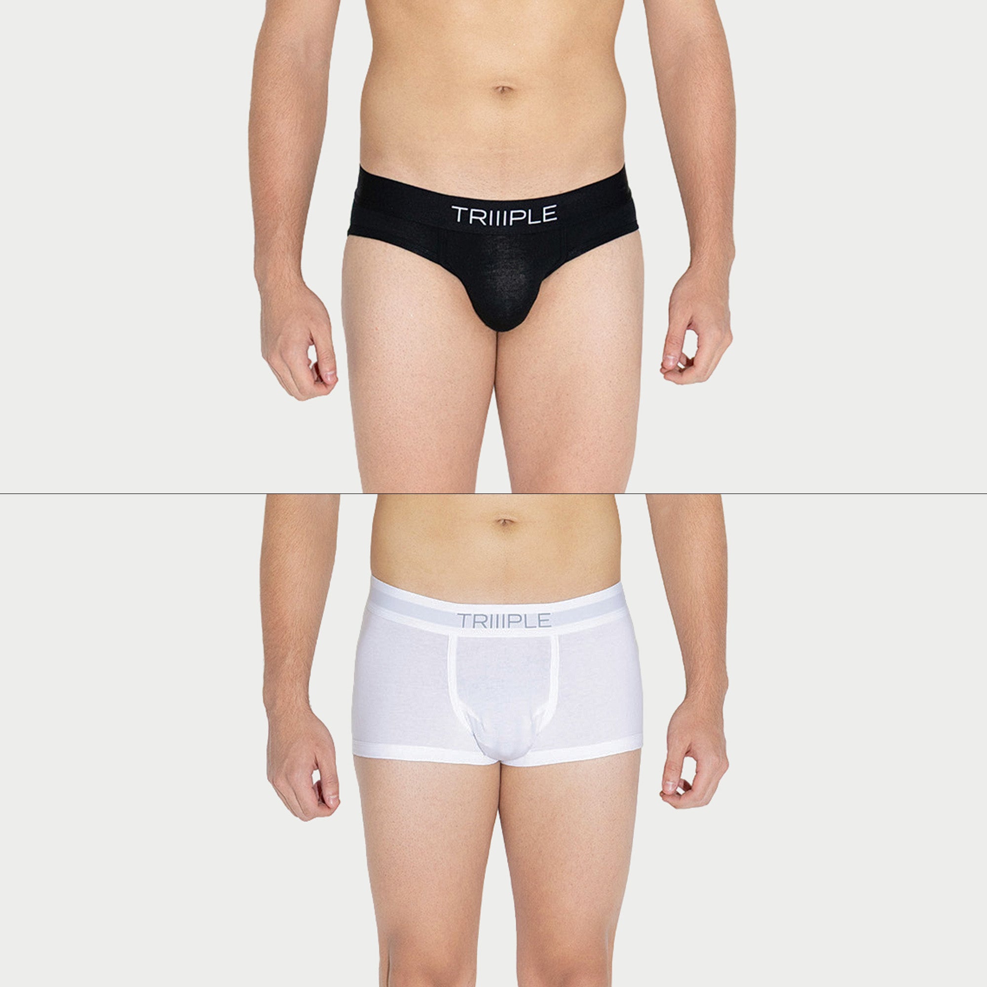 Our EVERYDAY 2-Pack pairs two of TRIIIPLE’s essentials made for daily wear and all-day comfort. Pairing the V Cotton Spandex Brief in black and W Cotton Spandex Boxer Trunk in white, this duo blends structure with stretch—so you’re covered whether it’s a busy morning or a slow Sunday. Made from our signature Cotton + Spandex blend, both styles deliver breathable softness, moisture control, and reliable support for every move.